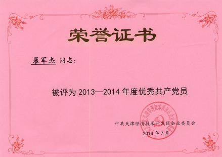 經企業黨委批準,公司黨支部獲得2013-2014年度先進黨支部稱號;楊瑩、齊林燕、黃濤、潘曉波、暴軍杰五位同志獲得優秀共產黨員稱號,特此祝賀。